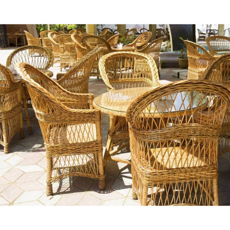 Canapea cu două locuri, împletită din răchită, utilizabilă mai ales ca mobilier de grădină.